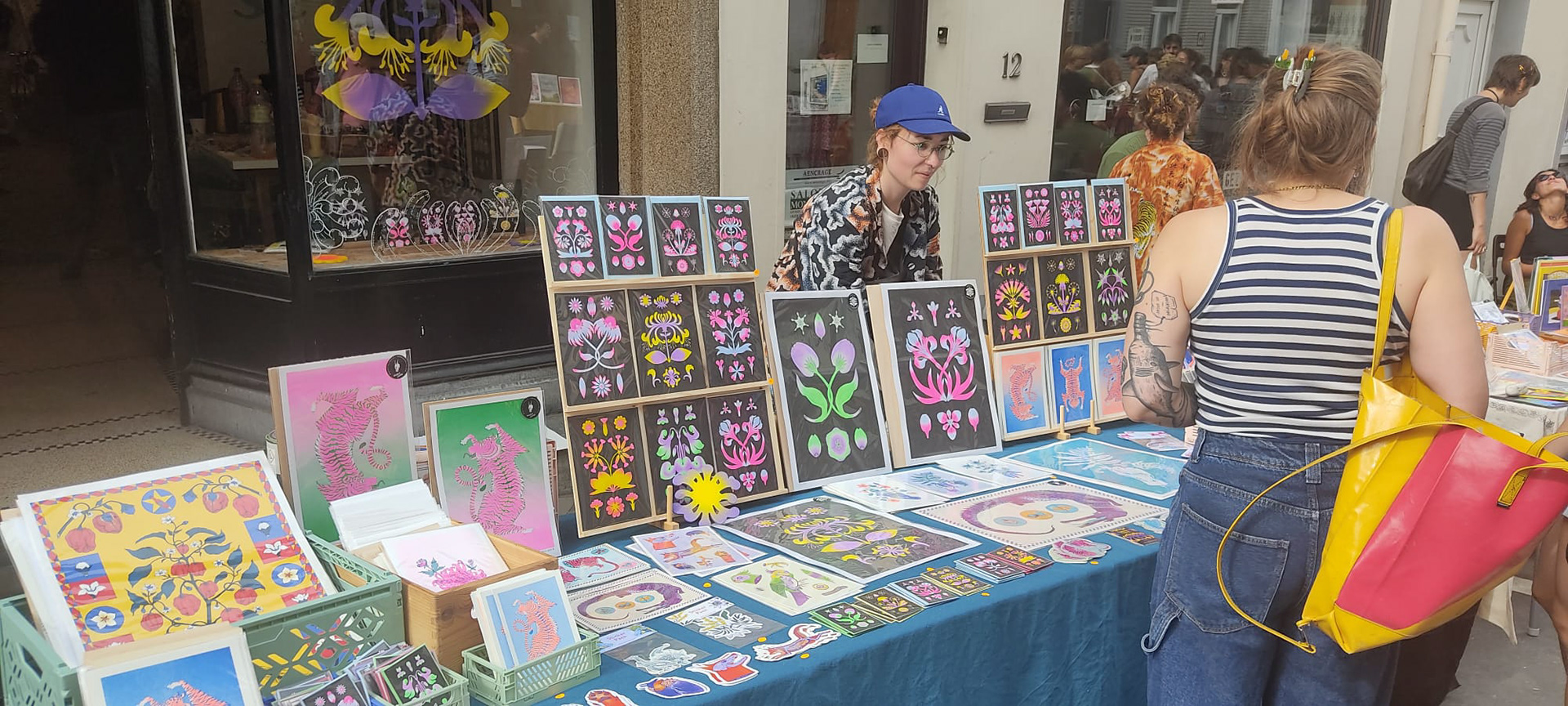 Réalisation de l'affiche pour la Brocante de l'illustration #3, organisée par mon collectif d'illustratrices, l'Atelier Ton Piquant, le dimanche 17 septembre à Bruxelles.