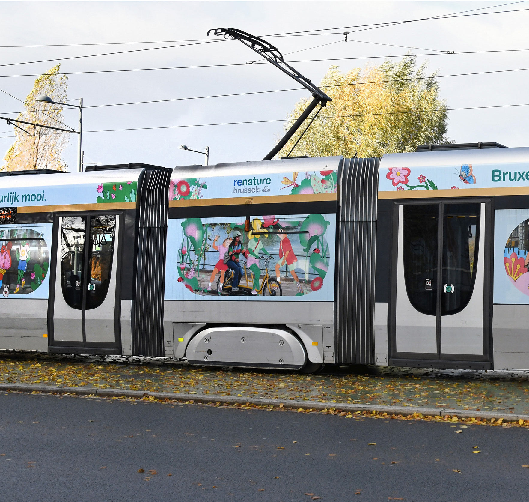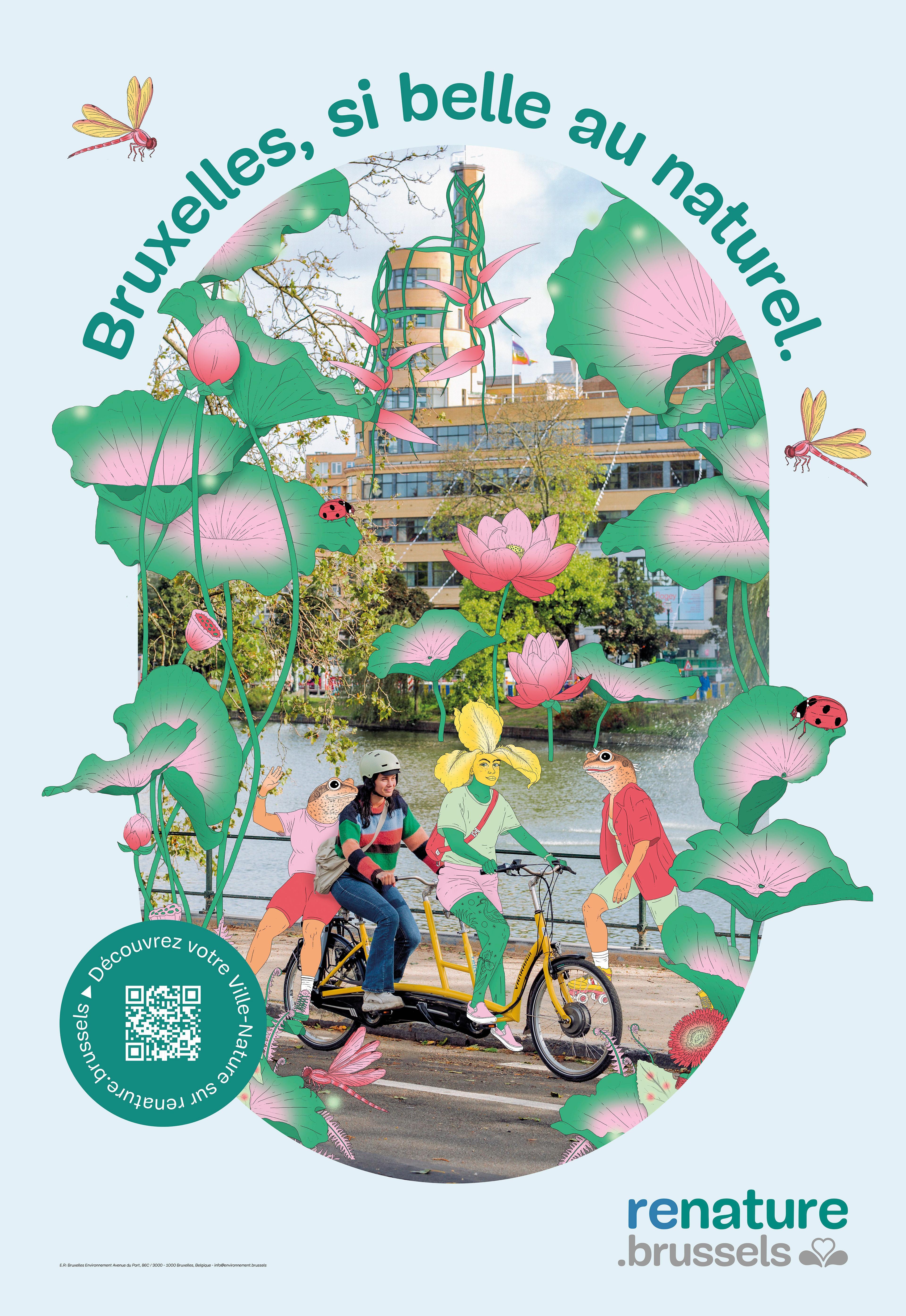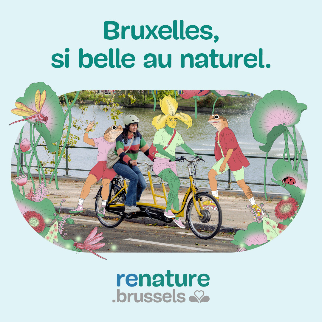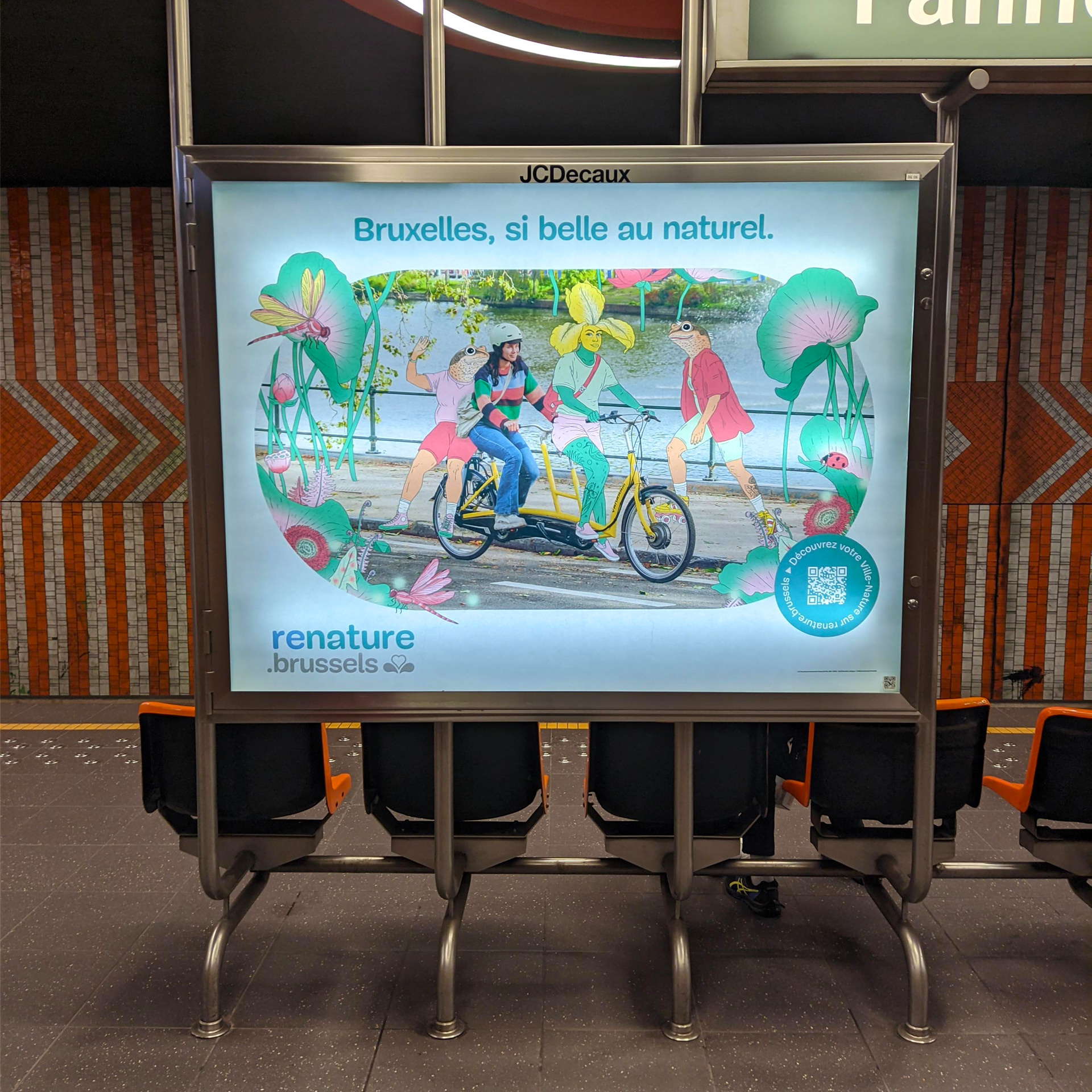 Illustration créée pour le projet RENATURE pour Bruxelles environnement. Visuel décliné en OOH, DOOH, banners, landing page, posts sur les réseaux sociaux et en habillage de tram par l'agence AIR.